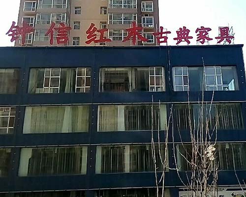 鐘信紅木古典家具體驗館樓頂大字的制作。